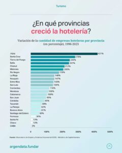 A escala nacional, el turismo generó en 2022 más de 1,2 millones de puestos de trabajo, lo que representa el 5,5% del empleo total. Se trata de un sector con fuerte participación de jóvenes, aunque también con elevados niveles de informalidad en rubros como la gastronomía y las actividades culturales.