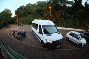 Uno de los momentos más esperados del viaje fue la excursión náutica, que permitió a los visitantes observar los saltos en primer plano. El recorrido comenzó en el centro de visitantes del parque, continuó con un traslado vehicular de aproximadamente 2.000 metros hasta el estacionamiento inferior y luego el descenso por una escalera de unos 45 escalones hasta el punto de embarque. Desde allí, las lanchas —equipadas con todos los elementos de seguridad y acompañadas por personal capacitado— navegaron al pie de los saltos, ofreciendo una experiencia directa y única.